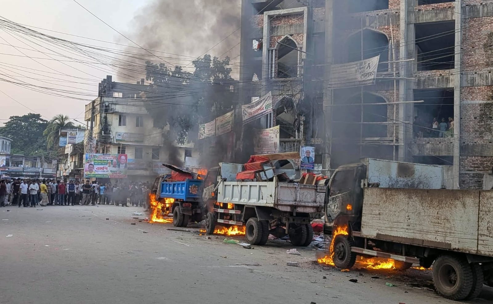 উচ্ছেদ অভিযানে পৌরসভার ৩ গাড়িতে হকারদের আগুন